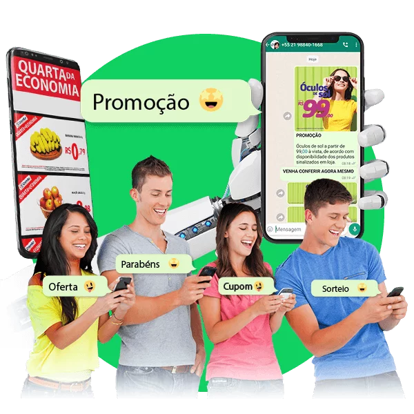 Decrete o fim dos custos excessivos com panfletos, encartes, promoters ou carros de som. Pela nossa plataforma de WhatsApp Corporativo, além de fazer envios de mensagens para todos os seus contatos, eles ainda poderão ser segmentados por etiquetas, grupos, classe social, endereço, sexo, idade e outros.